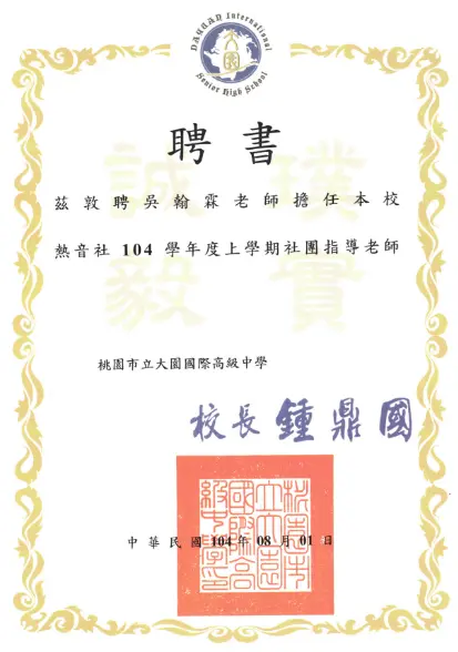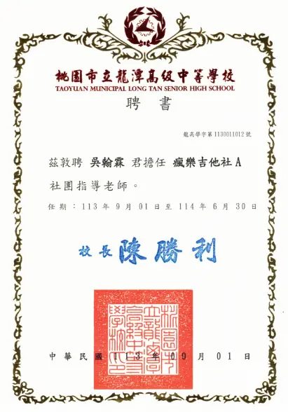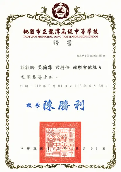 現任與曾任10所高中、大學吉他社指導老師,擁有十多年教學經驗